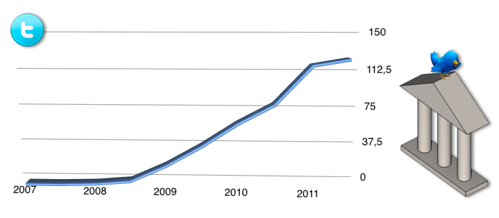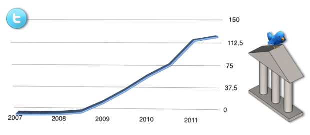 A modo de ejemplo del tipo de información que aparecerá en Museos&Redes II:  gráfica del crecimiento de los museos presentes en Twitter hasta octubre de 2011.