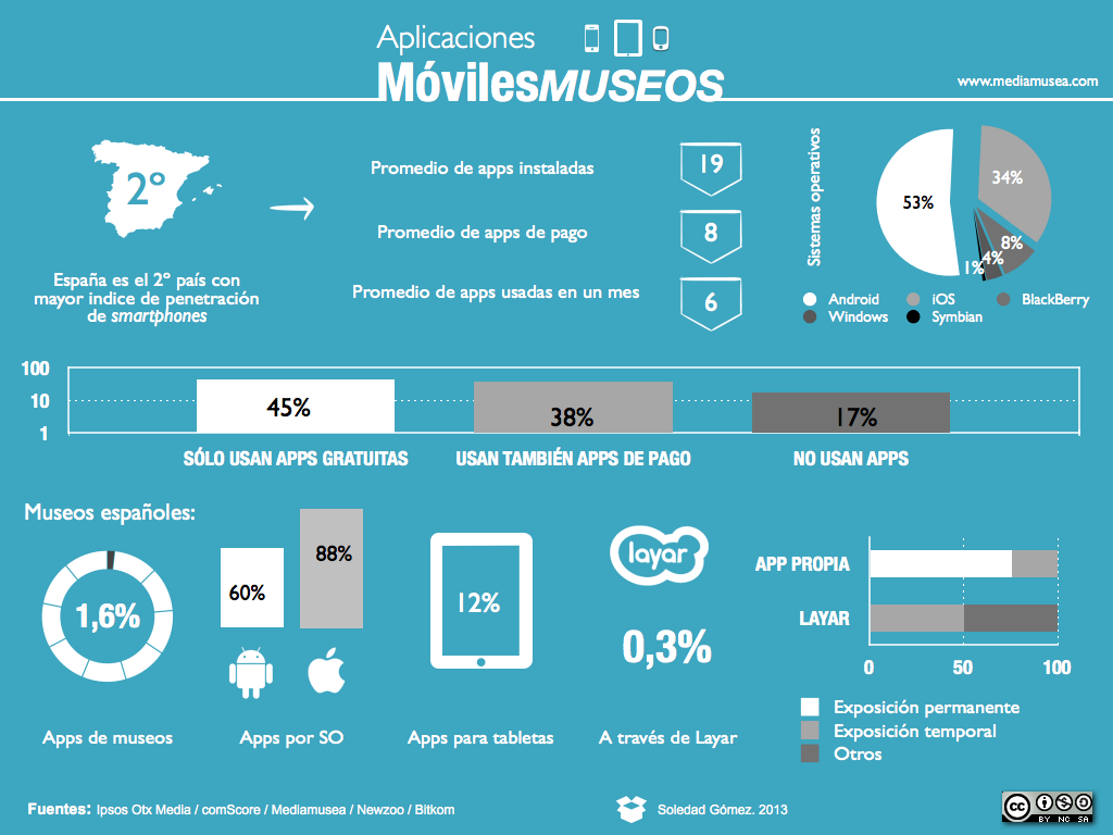 En relación a los museos españoles, sólo un 1,3% hace o ha hecho uso de códigos bidimensionales. Fundamentalmente se usan para aportar información sobre piezas, aunque también se suelen encontrar en las páginas web o compartidos en redes sociales.
