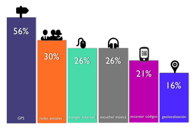 A nivel general, entre los principales usos que se les está dando a los smartphones se encuentra la descarga de códigos, con un 21% de la población que hace uso de ellos.