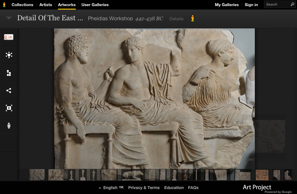 Google parece dispuesto a mostrar las obras de arte de las principales colecciones del mundo en su Art Project. Desde su inicio en 2009 con las Obras Maestras del Museo del Prado, la primera versión de la plataforma en febrero de 2011 con «sólo» 1.000 obras y las sucesivas actualizaciones, el gigante de Internet deja claro su interés por convertirse en un referente en el campo de la cultura y la educación, proporcionando cada vez más contenidos accesibles. Este proyecto fue el primero de los lanzados por Google y hoy se encuentra englobado en el Google Cultural Institute, del que también forman parte las Maravillas del Mundo y las Exposiciones de Archivos.